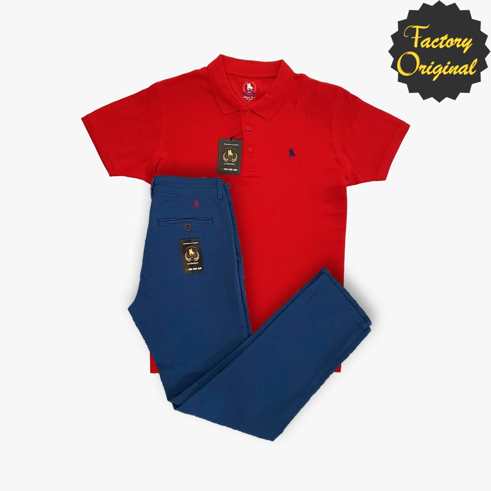Conjunto de chino súper elástico azul royal y Polo manga rojo de SYC Factory Original