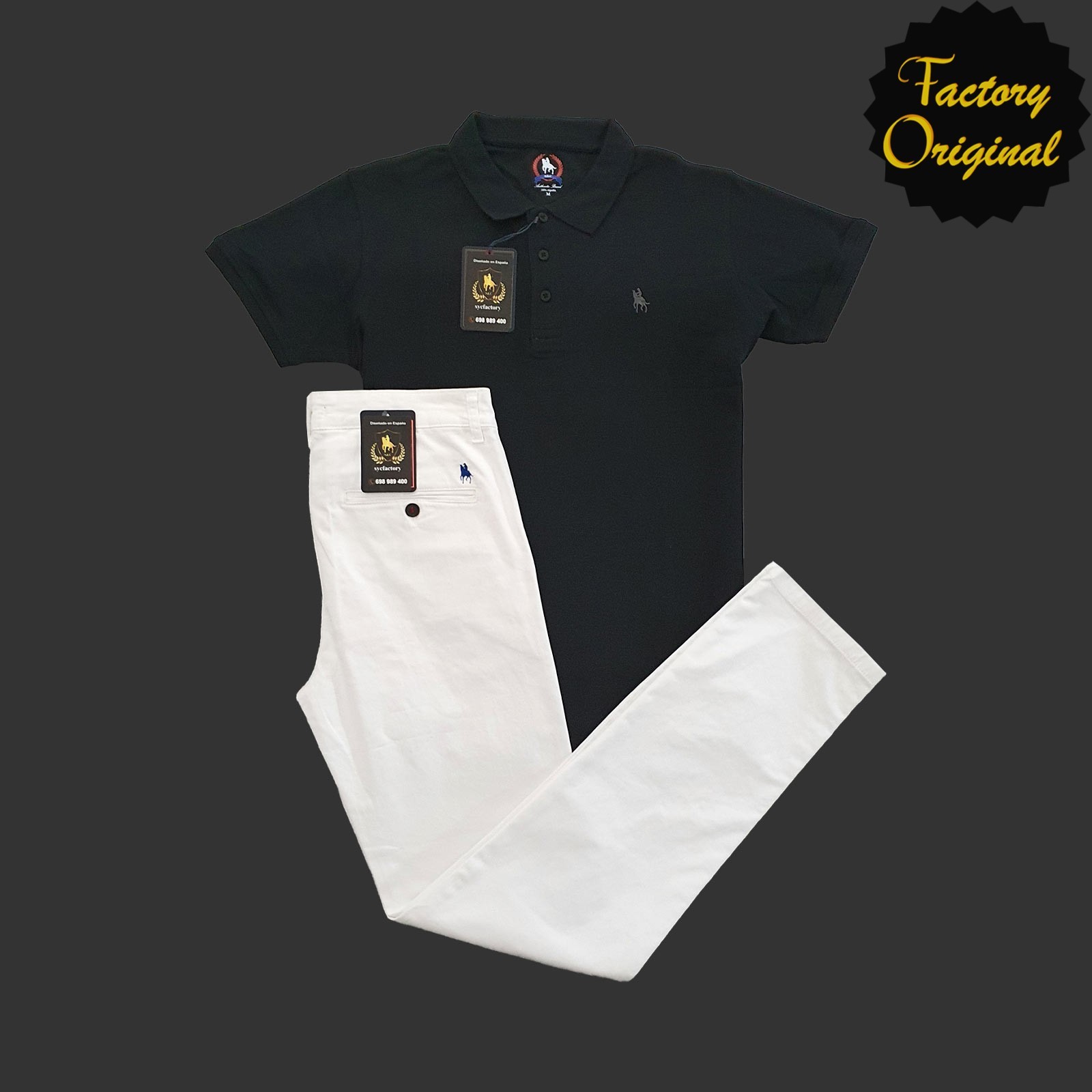 Conjunto de chino súper elástico blanco y Polo negro de SYC Factory Original