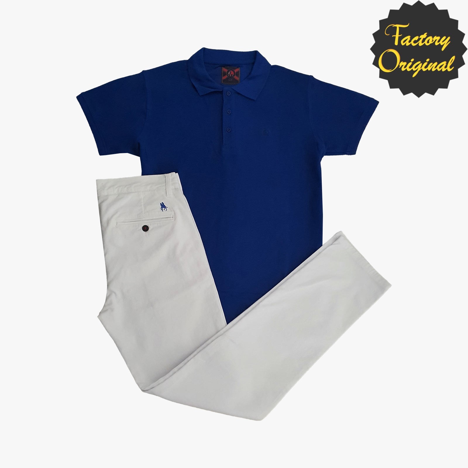 Conjunto de chino súper elástico beis y Polo manga corta azul noche de SYC Factory Original