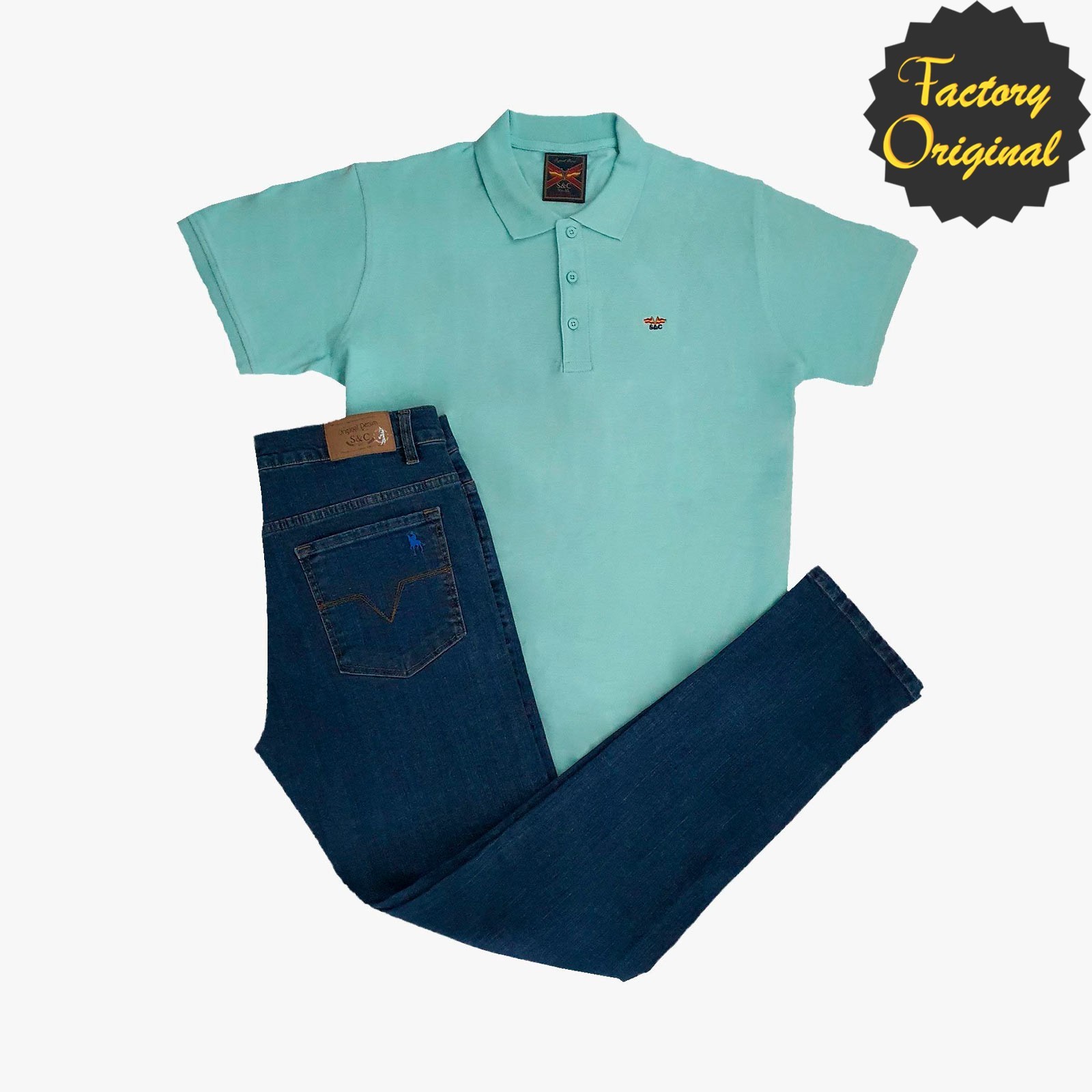 Conjunto de pantalon vaquero jazz piedra Polo manga corta verde SYC FACTORY ORIGINAL