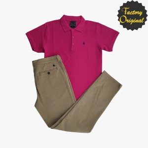 Conjunto de pantalon chino beis tostado Polo manga corta fucsia SYC FACTORY ORIGINAL