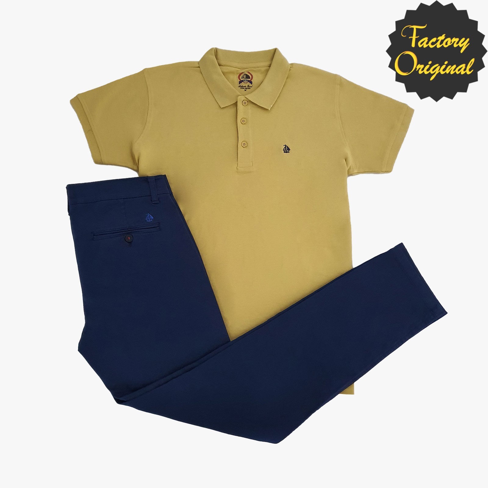 Conjunto de pantalon chino barco azul royal Polo barco manga corta amarillo SYC FACTORY ORIGINAL