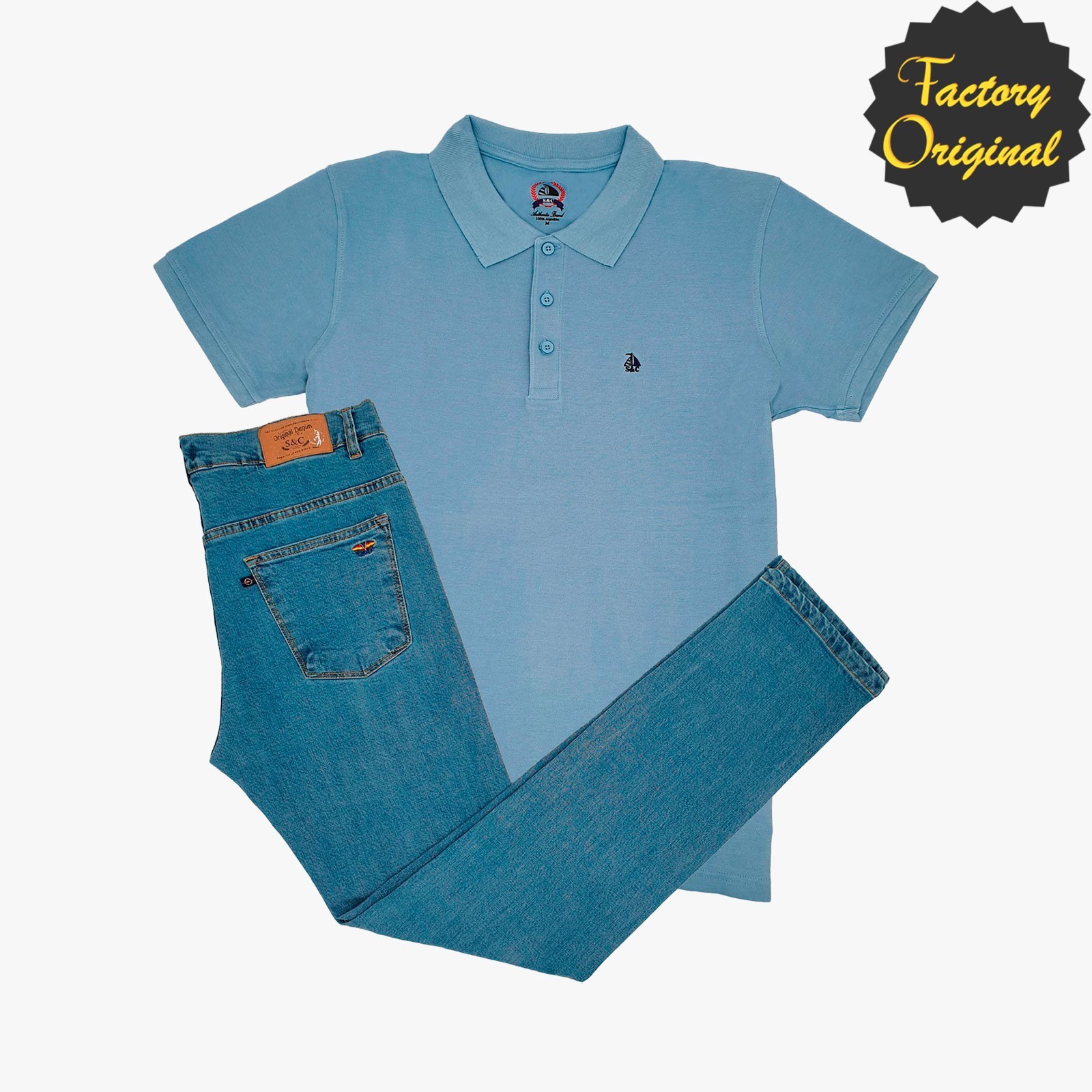 Conjunto de patriota nuevo jazz denim claro y Polo Básico barco manga corta celeste de SYC Factory Original