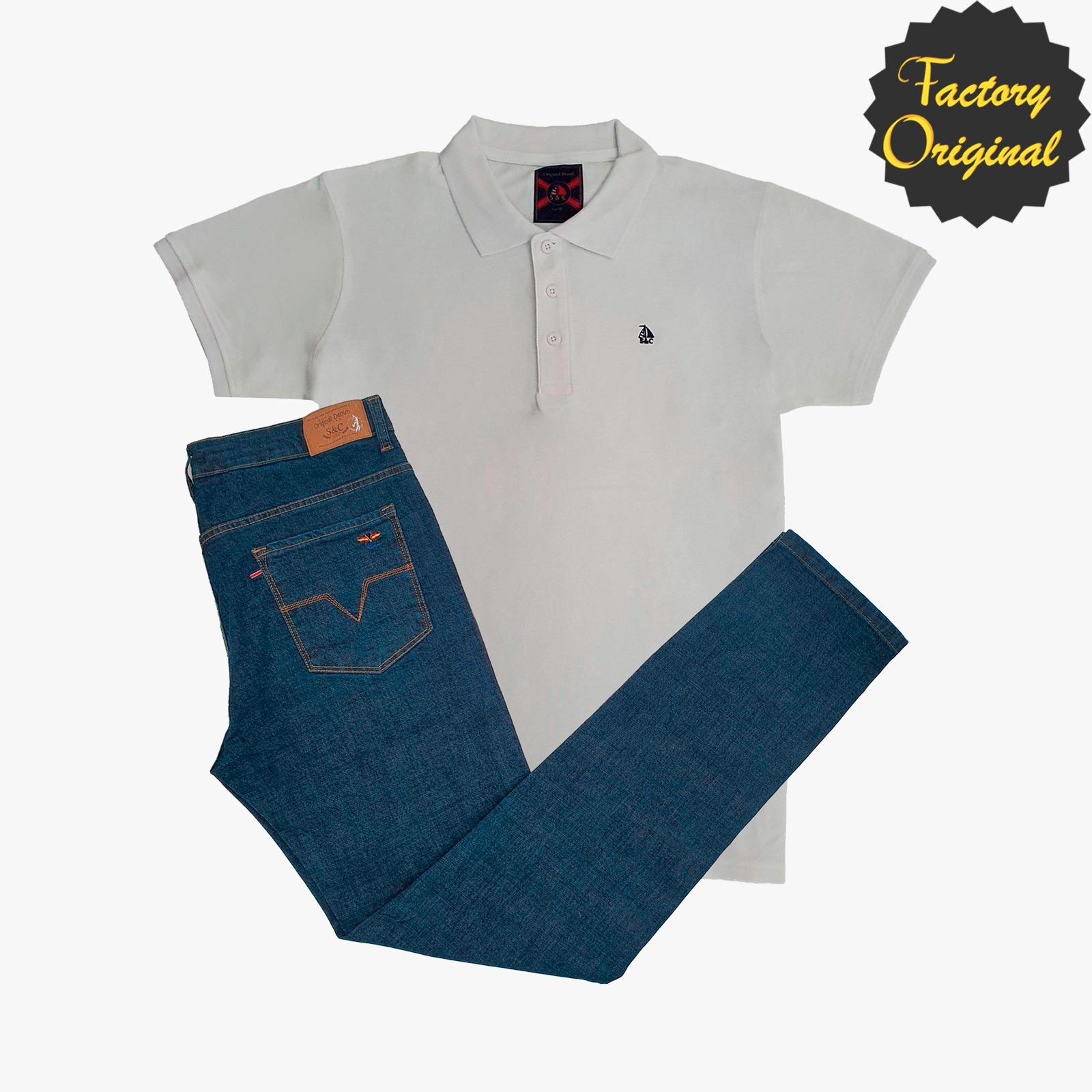 Conjunto de patriota jazz denim oscuro y Polo nuevo Básico manga corta blanco de SYC Factory Original