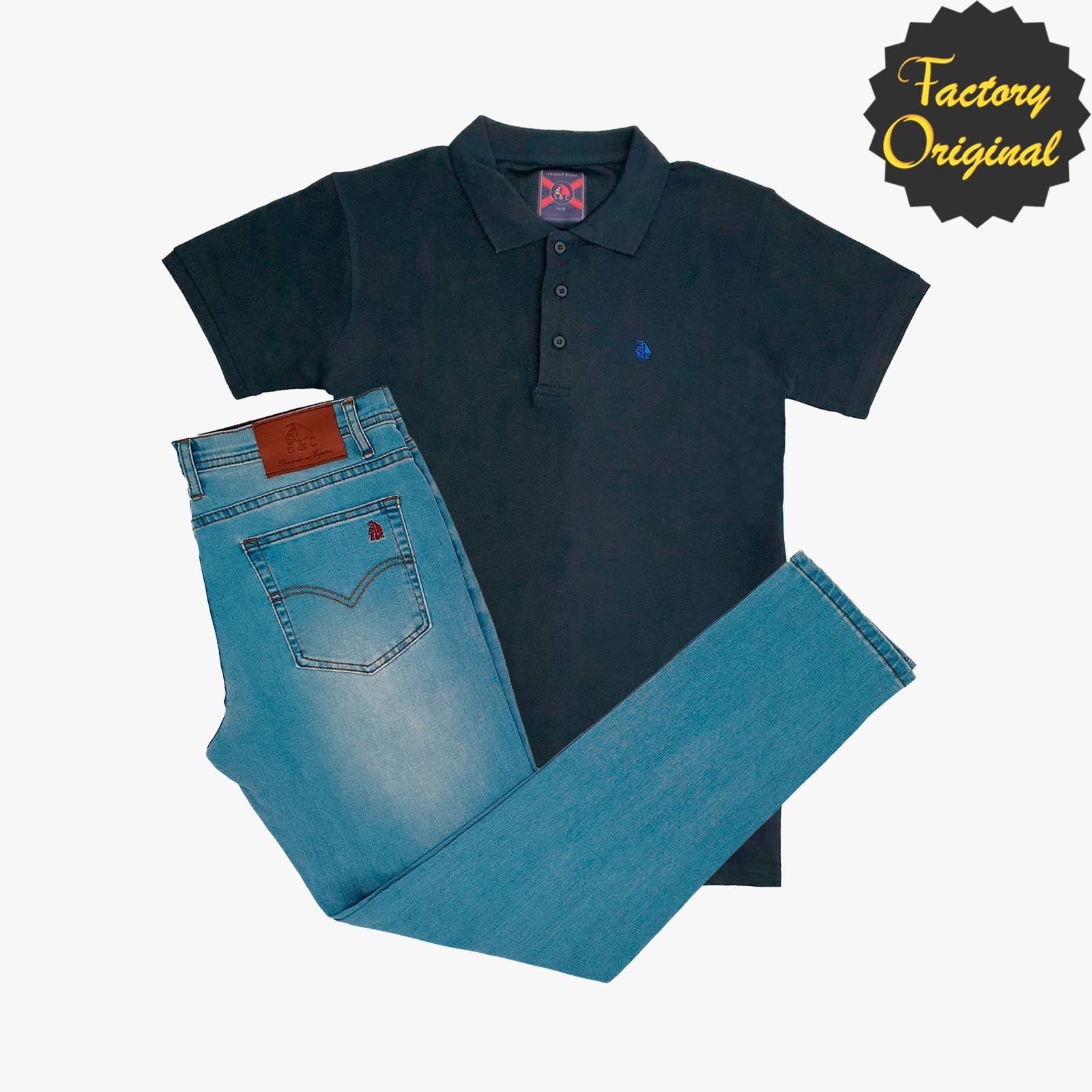 Conjunto de barco ibiza vaquero claro y Polo nuevo Básico manga corta marino de SYC Factory Original