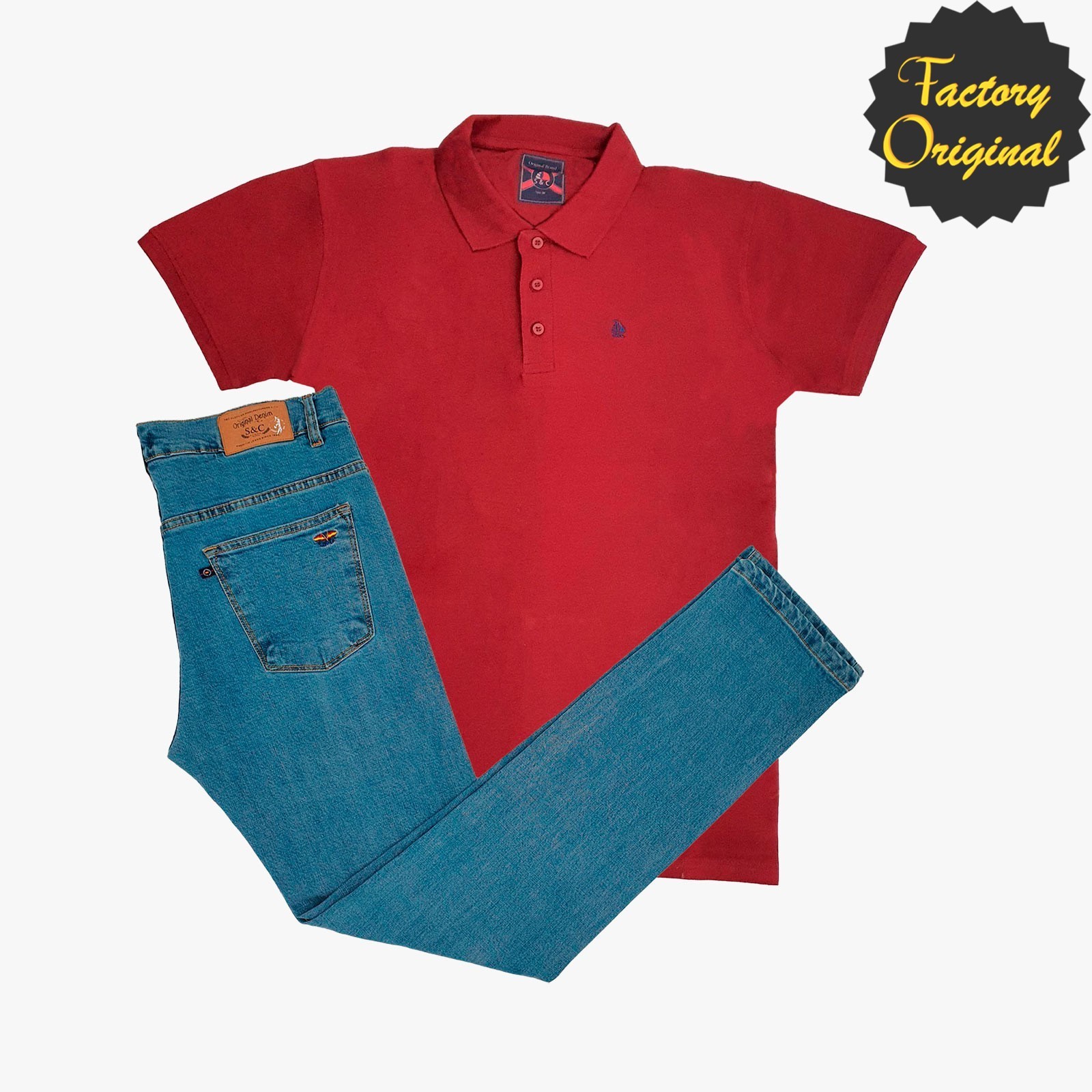 Conjunto de patriota jazz denim oscuro y Polo nuevo Básico manga corta granate de SYC Factory Original