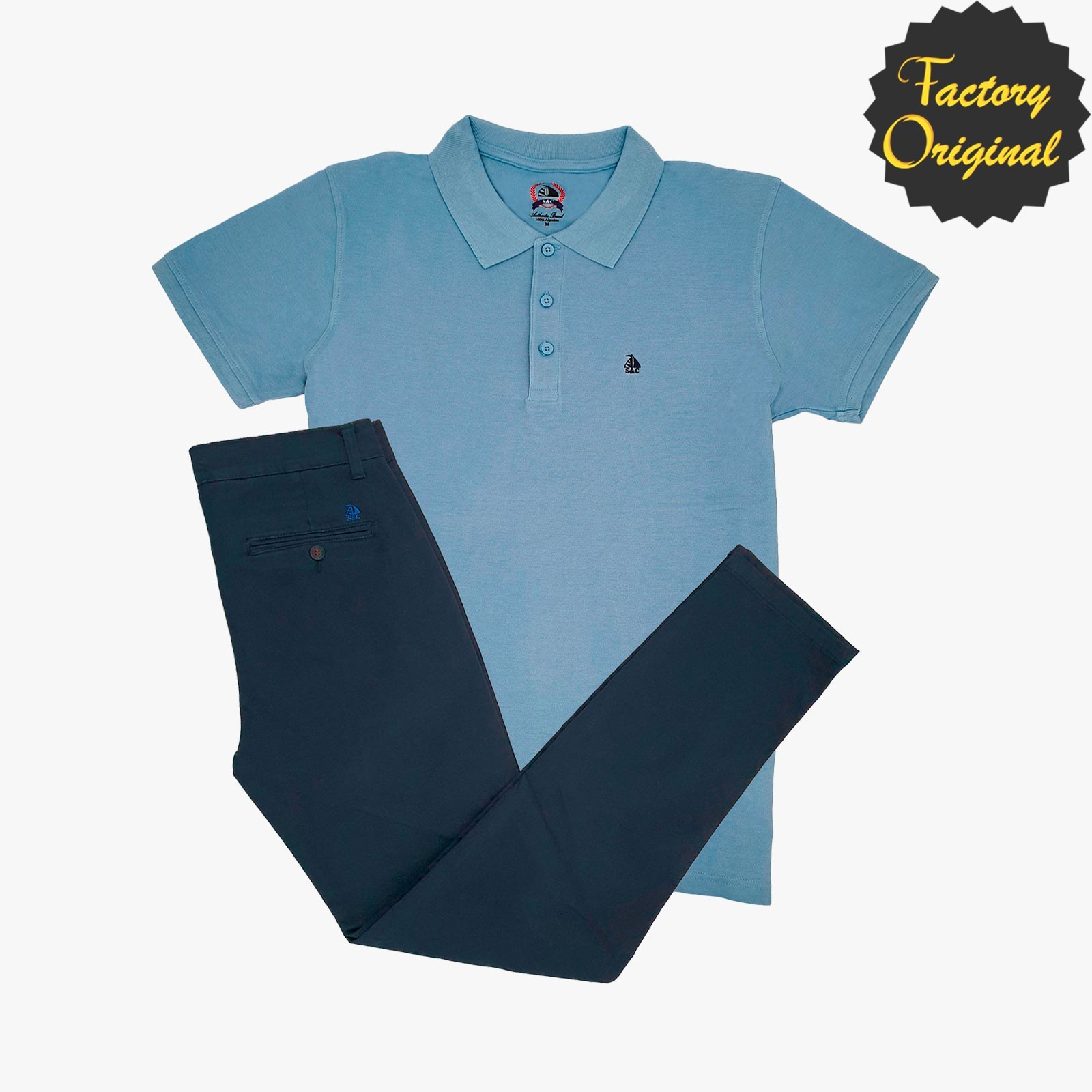 Conjunto de chino barco marino y Polo Básico barco manga corta celeste de SYC Factory Original