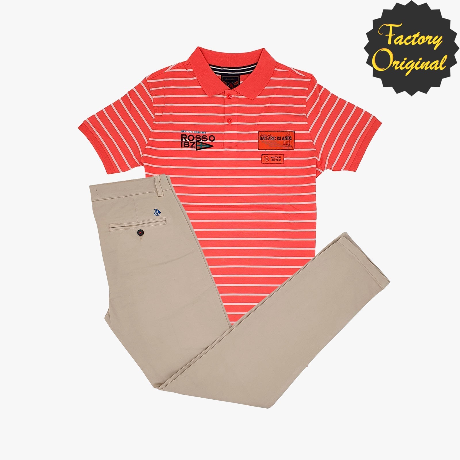 Conjunto de chino barco beis claro Polo fantasía Rosso Heritage coral de SYC Factory Original
