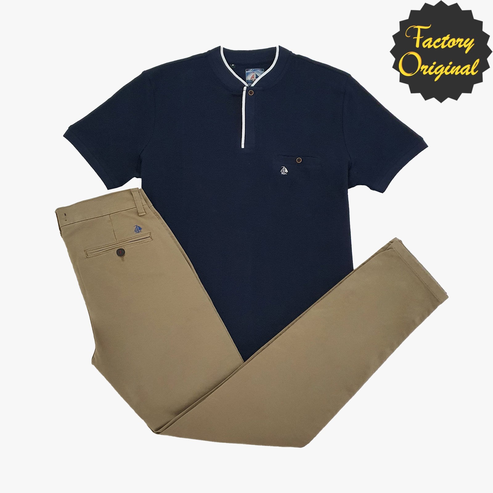 Conjunto de chino barco beis tostado Polo maofit marino de SYC Factory Original