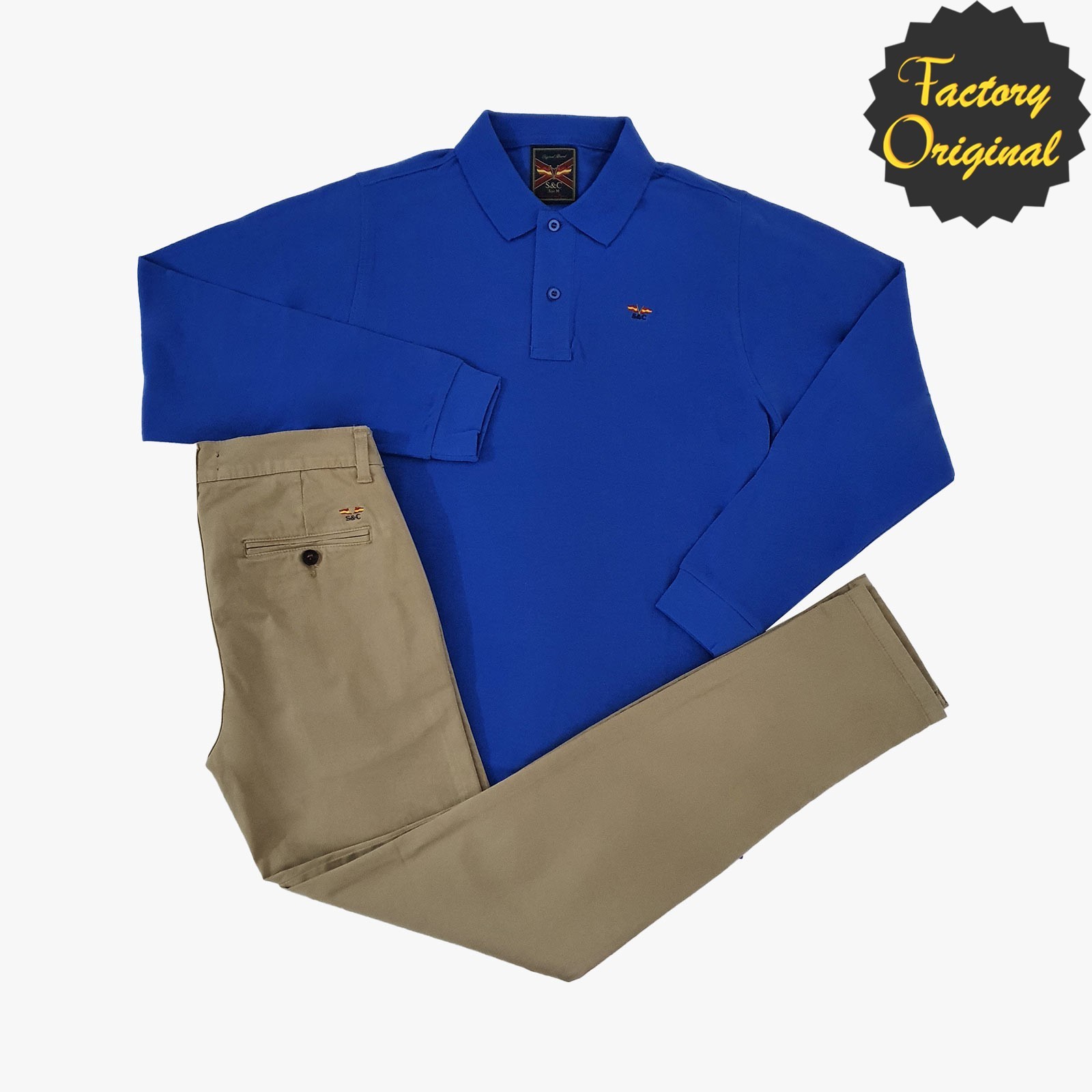 Conjunto de chino elastico beis tostado Polo azul royal de Syc Factory Original