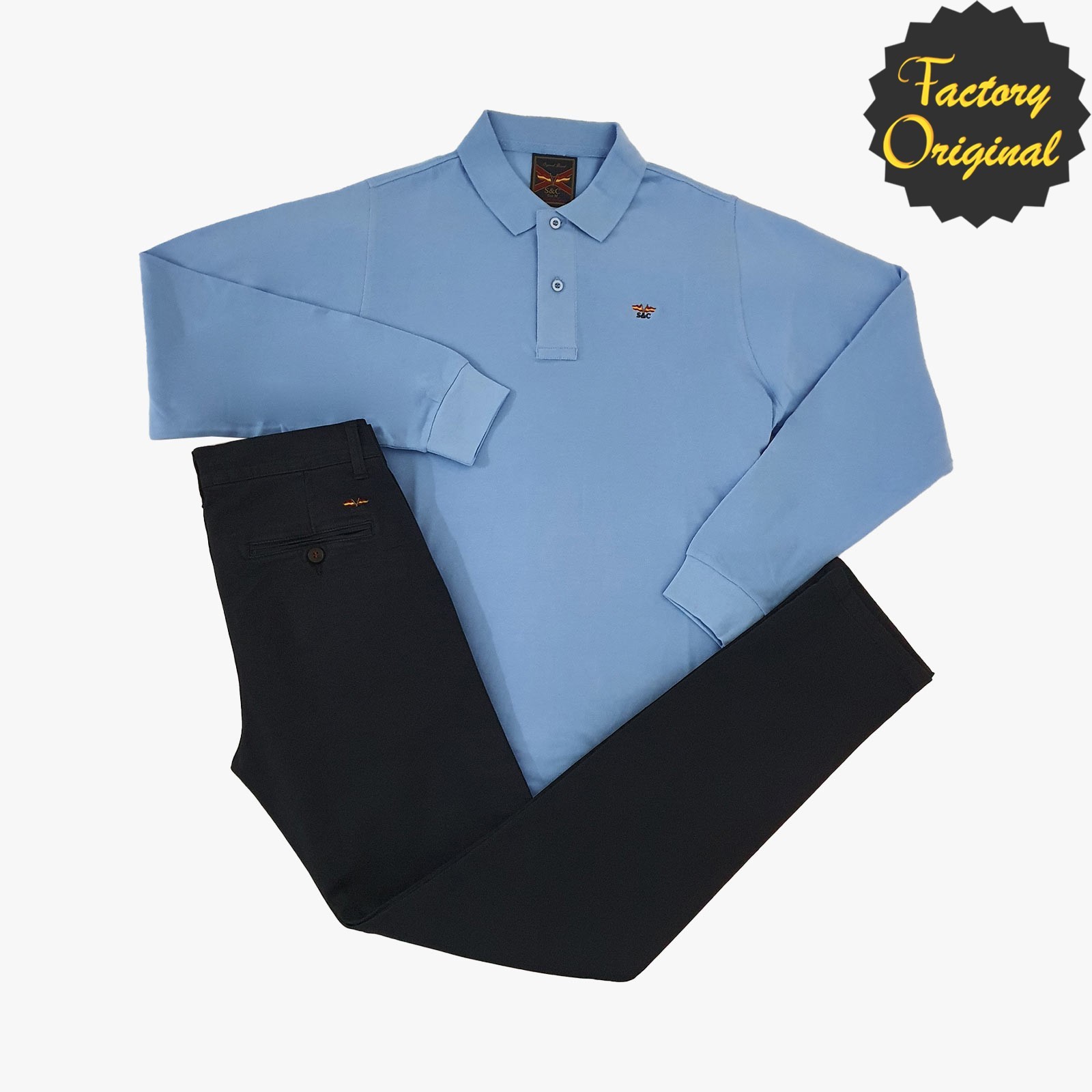 Conjunto de chino elastico negro Polo celeste de Syc Factory Original