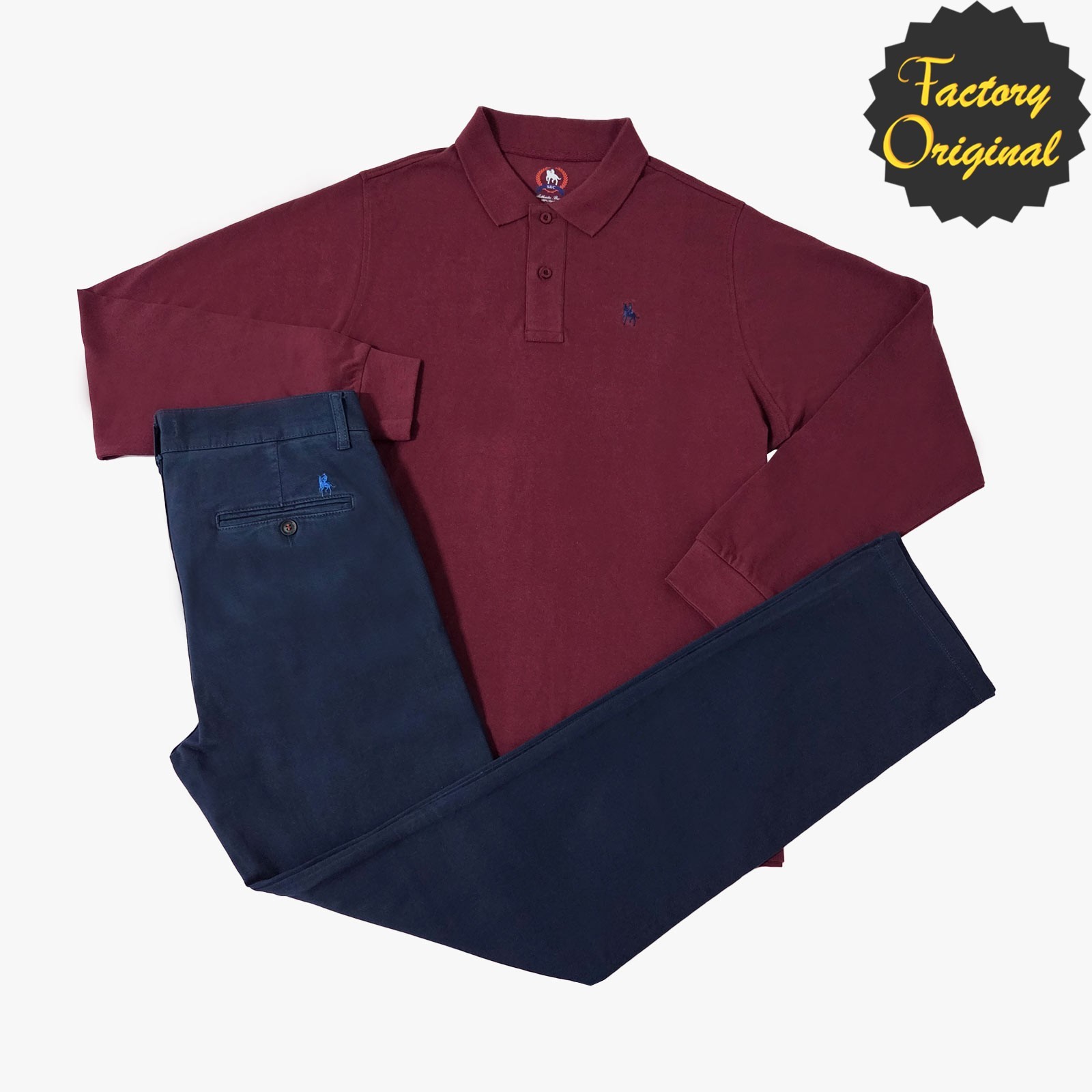 Conjunto Pantalón chino marino Polo manga larga granate de Syc Factory Original