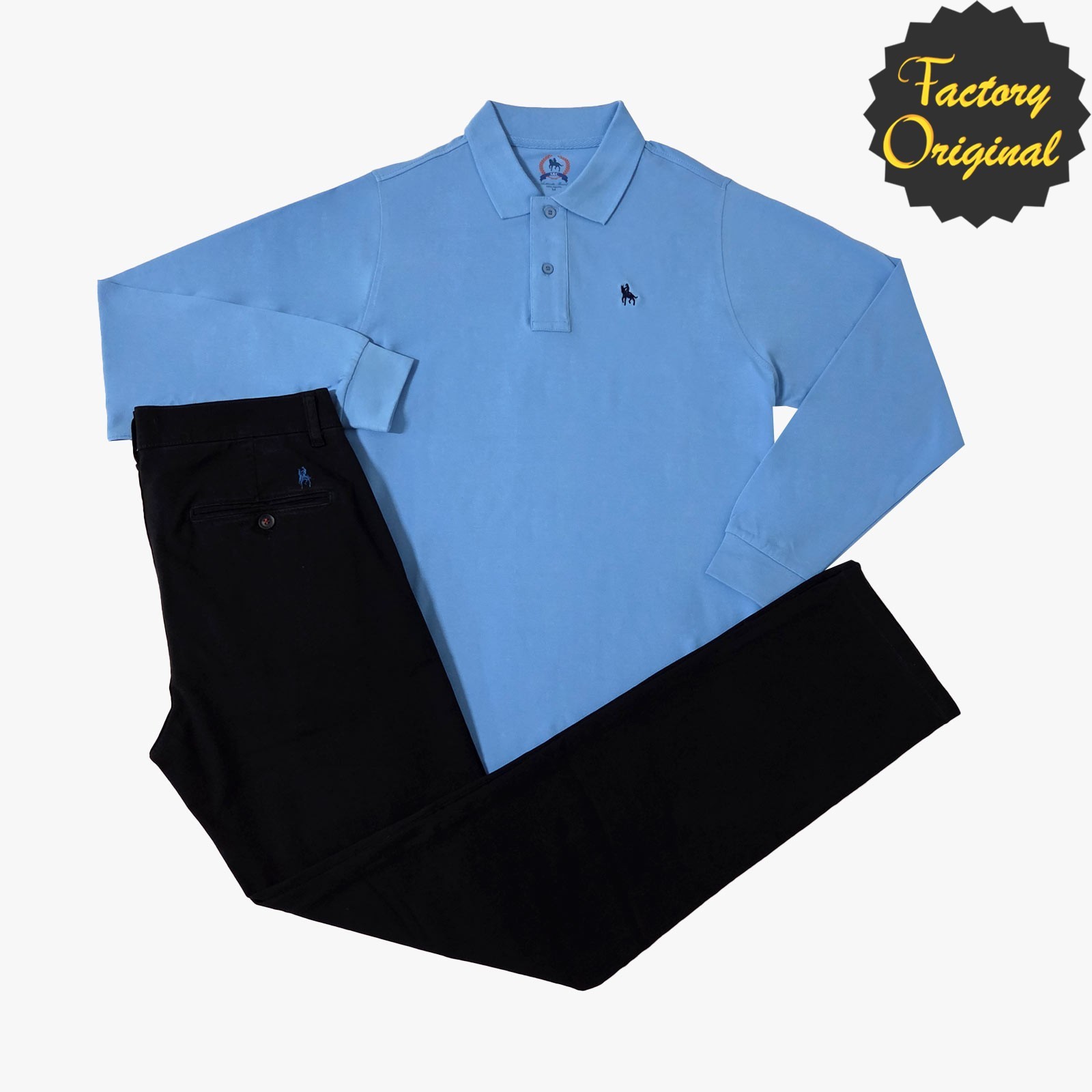 Conjunto de Pantalón chino negro Polo manga larga celeste de Syc Factory Original