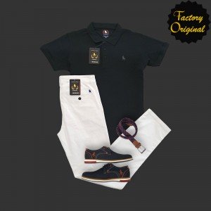 Pack polo basico negro Pantalon elastico chino blanco mocasin premium negro de SYC Factory Original