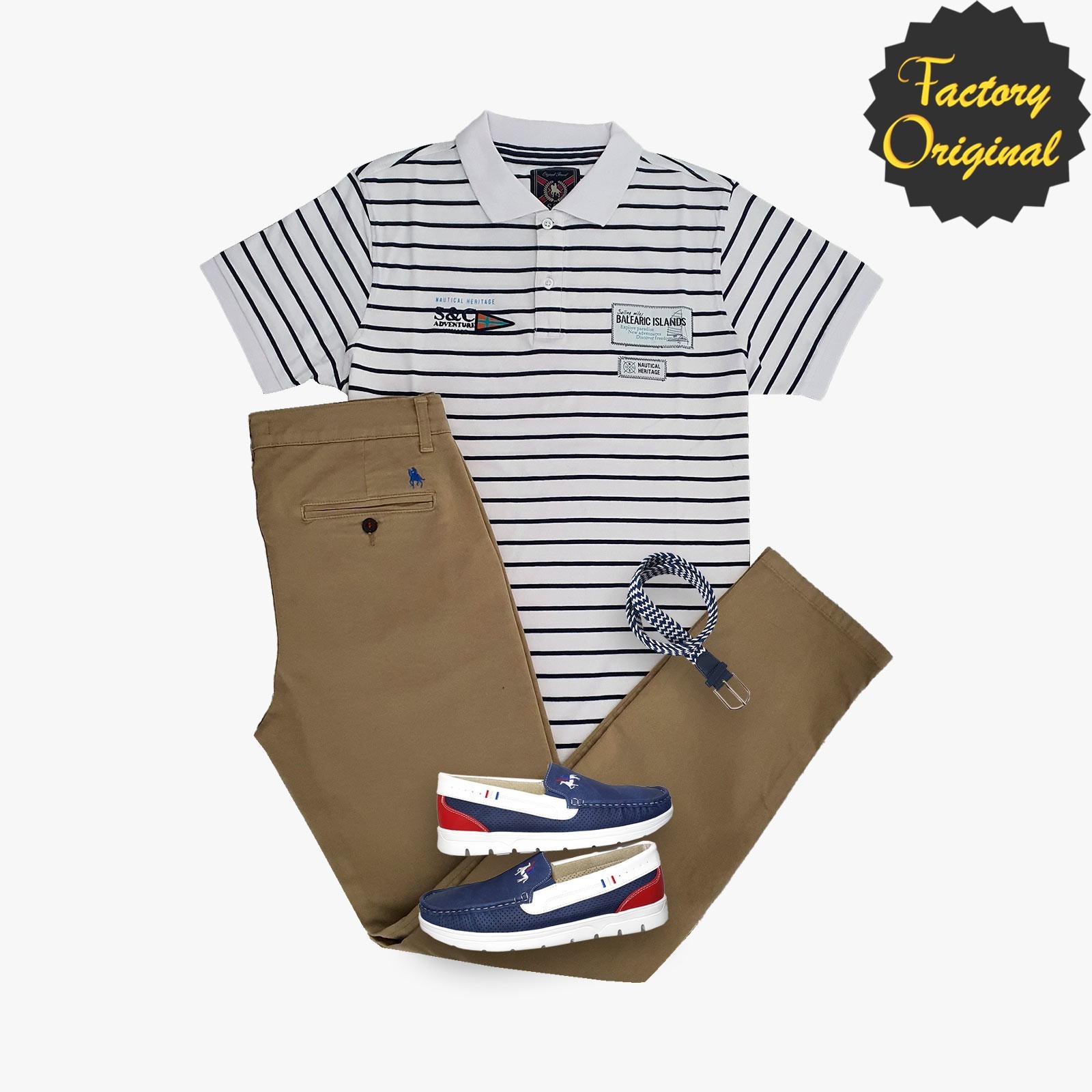 Pack polo fantasia rayado blanco Pantalon chino tostado nautico bicolor marino de SYC Factory Original