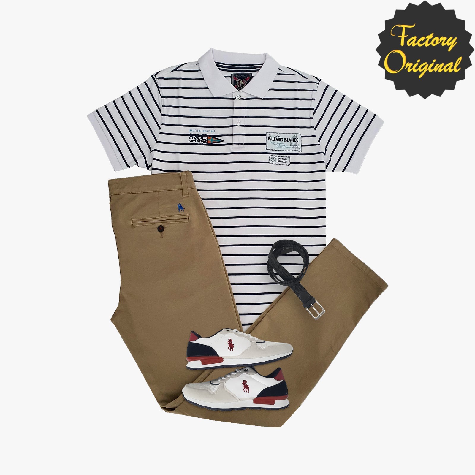 Pack polo fantasia rayado blanco Pantalon chino tostado deportivo cartagonova de SYC Factory Original