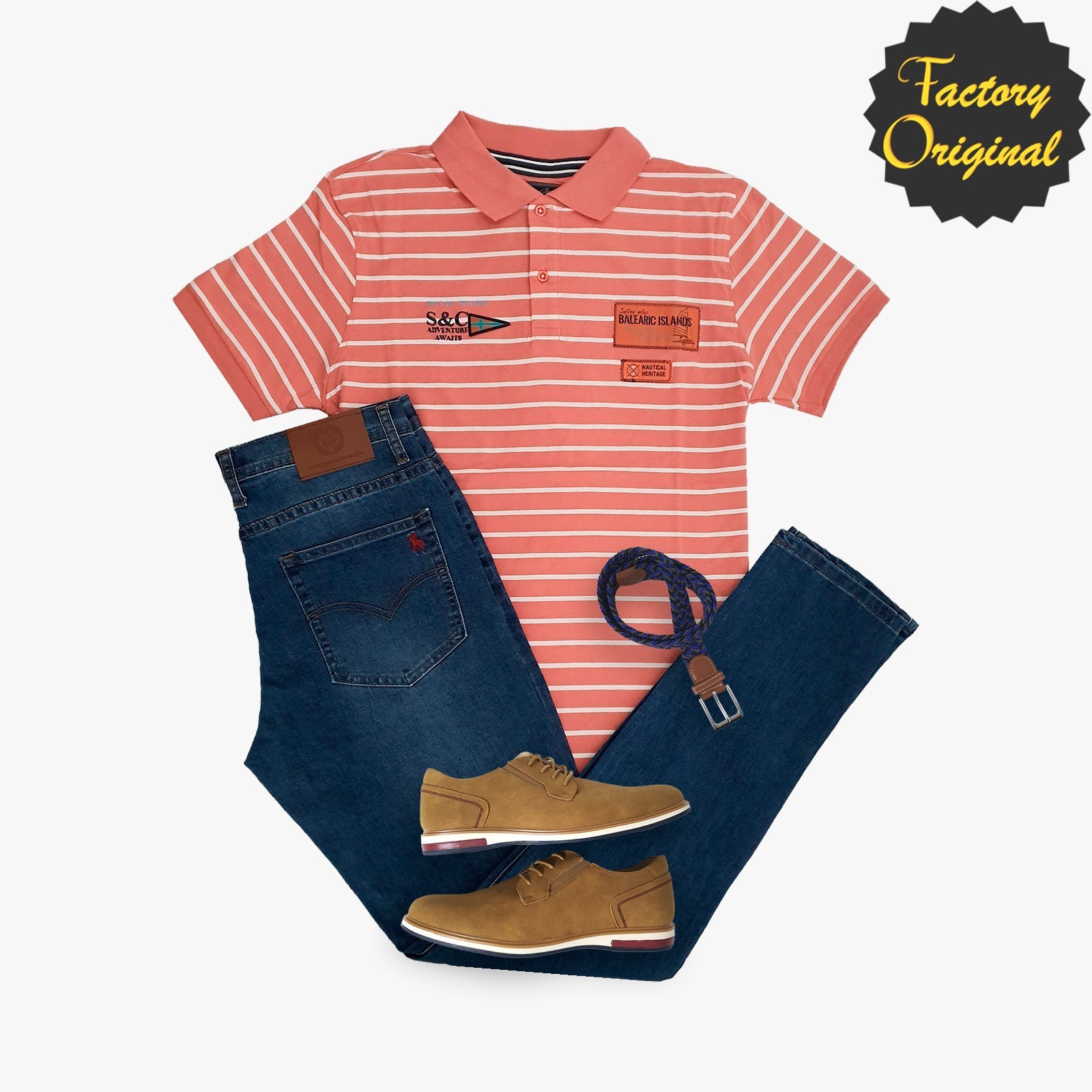 Pack polo fantasia rayado rojo Pantalon vaquero mocasin camel de SYC Factory Original