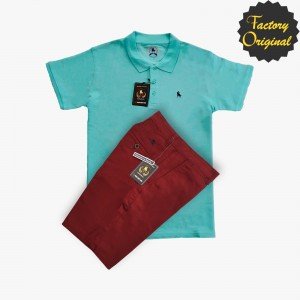 Conjunto de Bermuda elástica granate polo manga corta verde agua SYC Factory Original