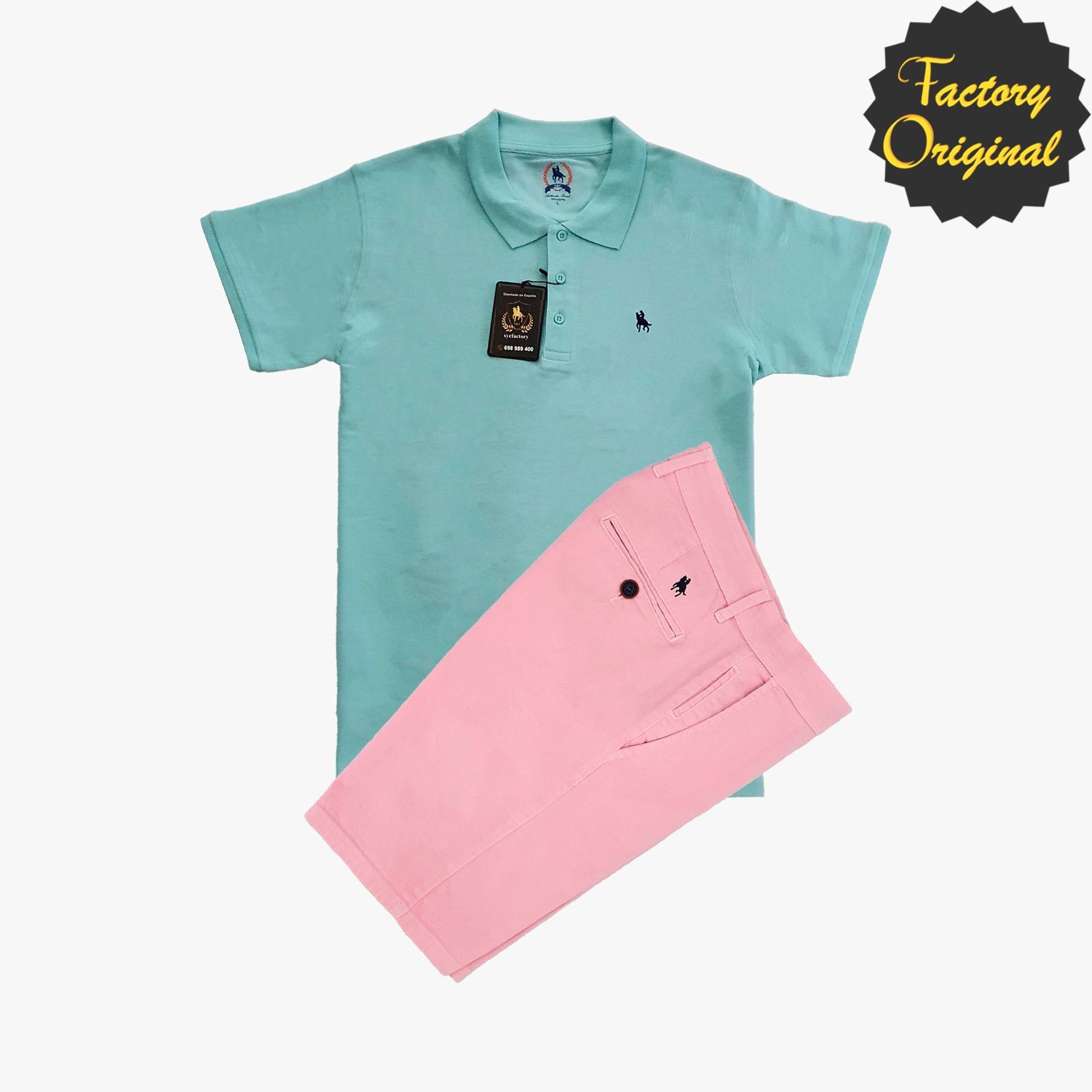 Conjunto de Bermuda rosa polo manga corta básico verde agua SYC Factory Original