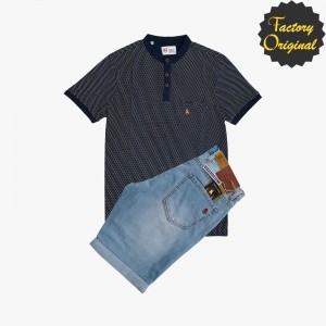 Conjunto de Bermuda vaquera clara polo manga corta lunares negro SYC Factory Original
