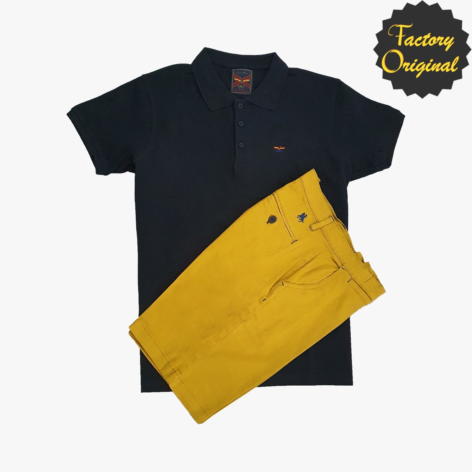 Conjunto de Bermuda mostaza polo manga corta marino SYC Factory Original