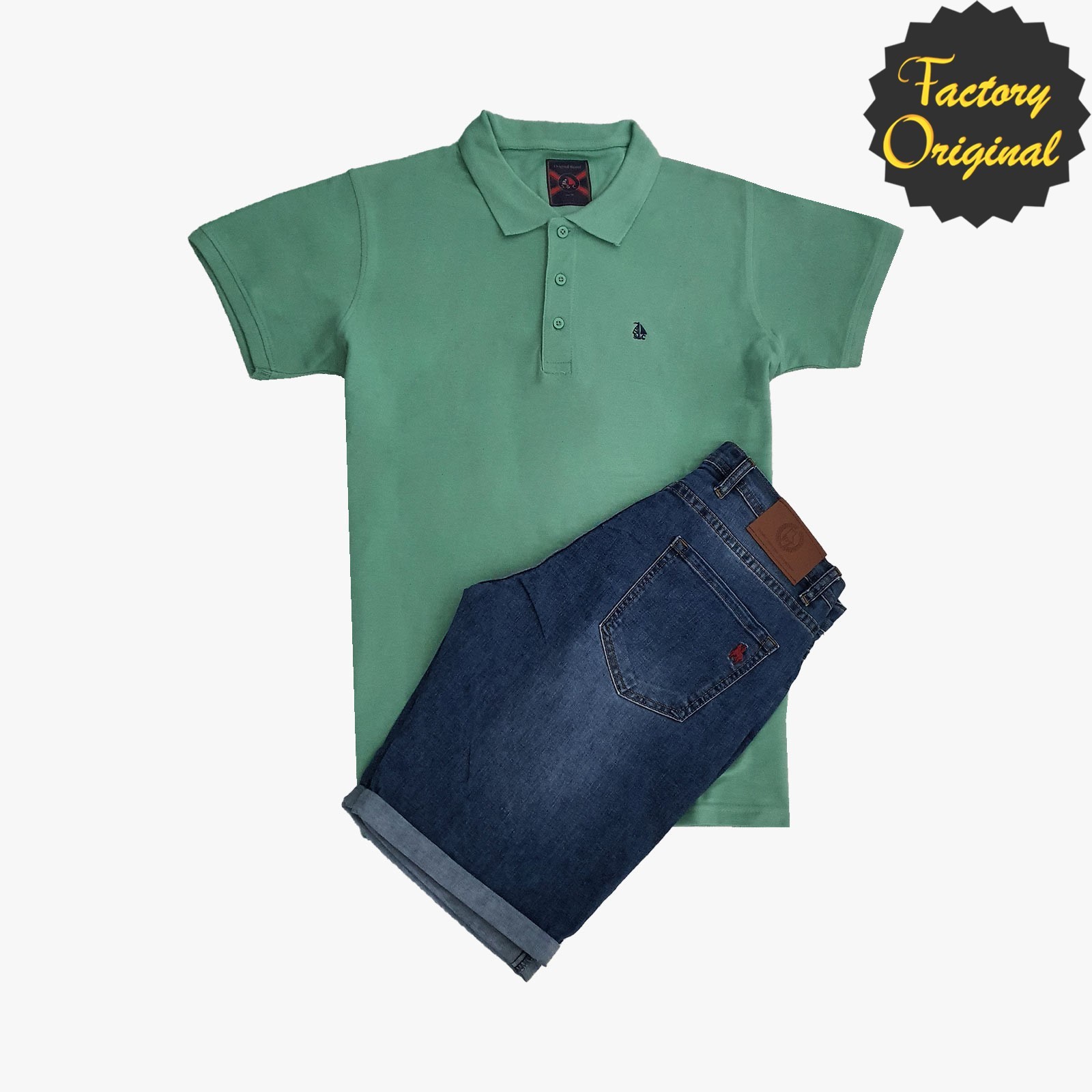 Conjunto de Bermuda vaquera oscura polo manga corta verde menta SYC Factory Original
