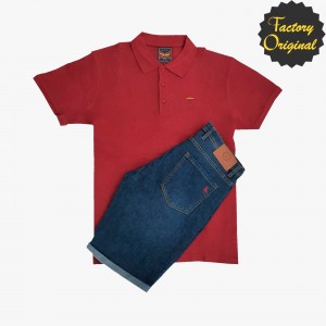 Conjunto de Bermuda vaquera oscura polo manga corta granate SYC Factory Original