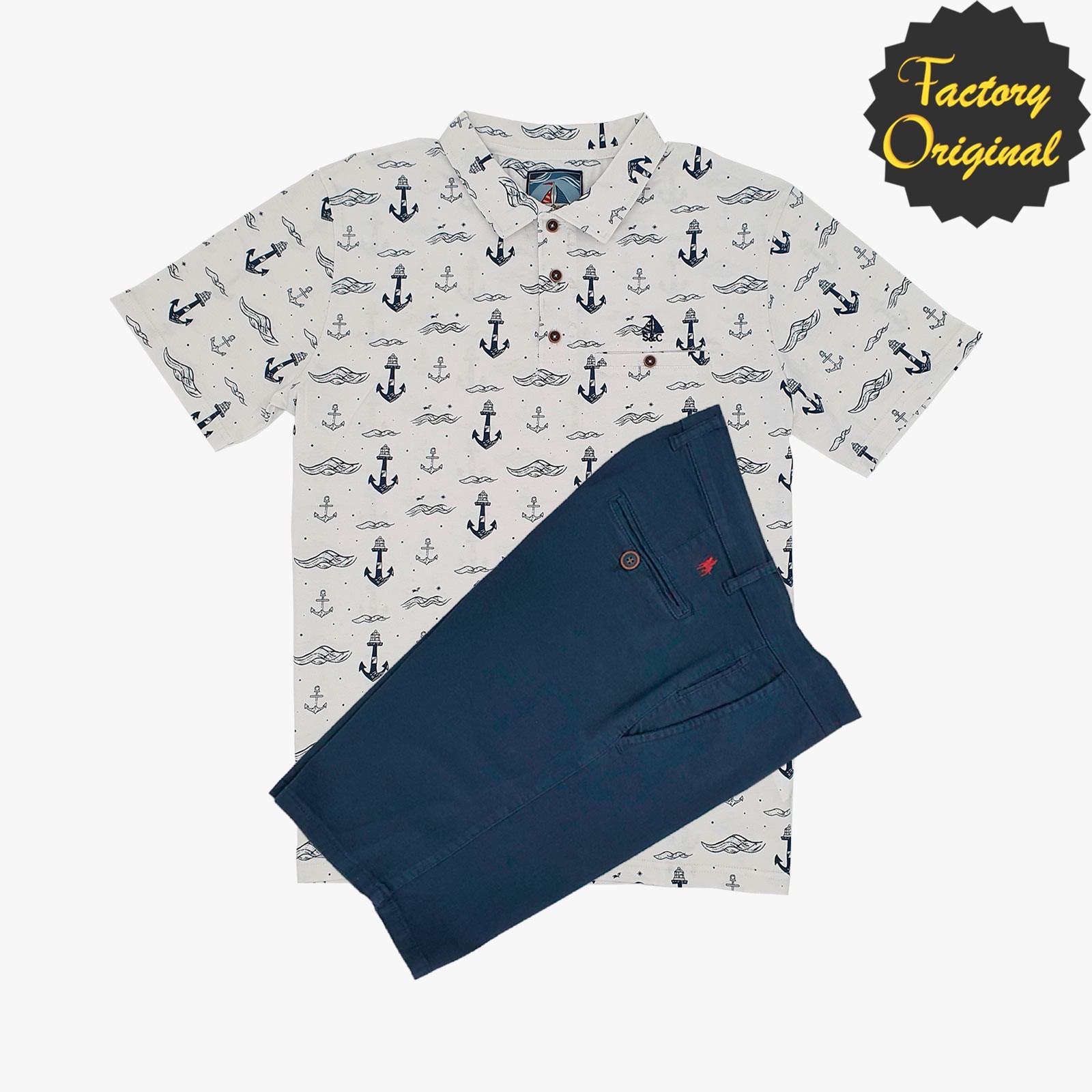 Conjunto de Bermuda marino polo manga corta fantasía marinero blanco SYC Factory Original