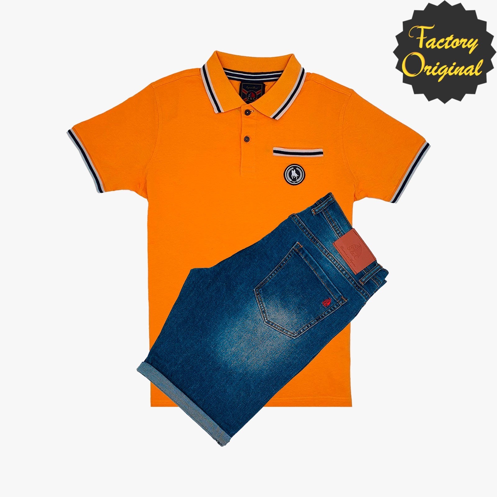 Conjunto de Bermuda barco vaquero medio polo manga corta fantasía piña SYC Factory Original