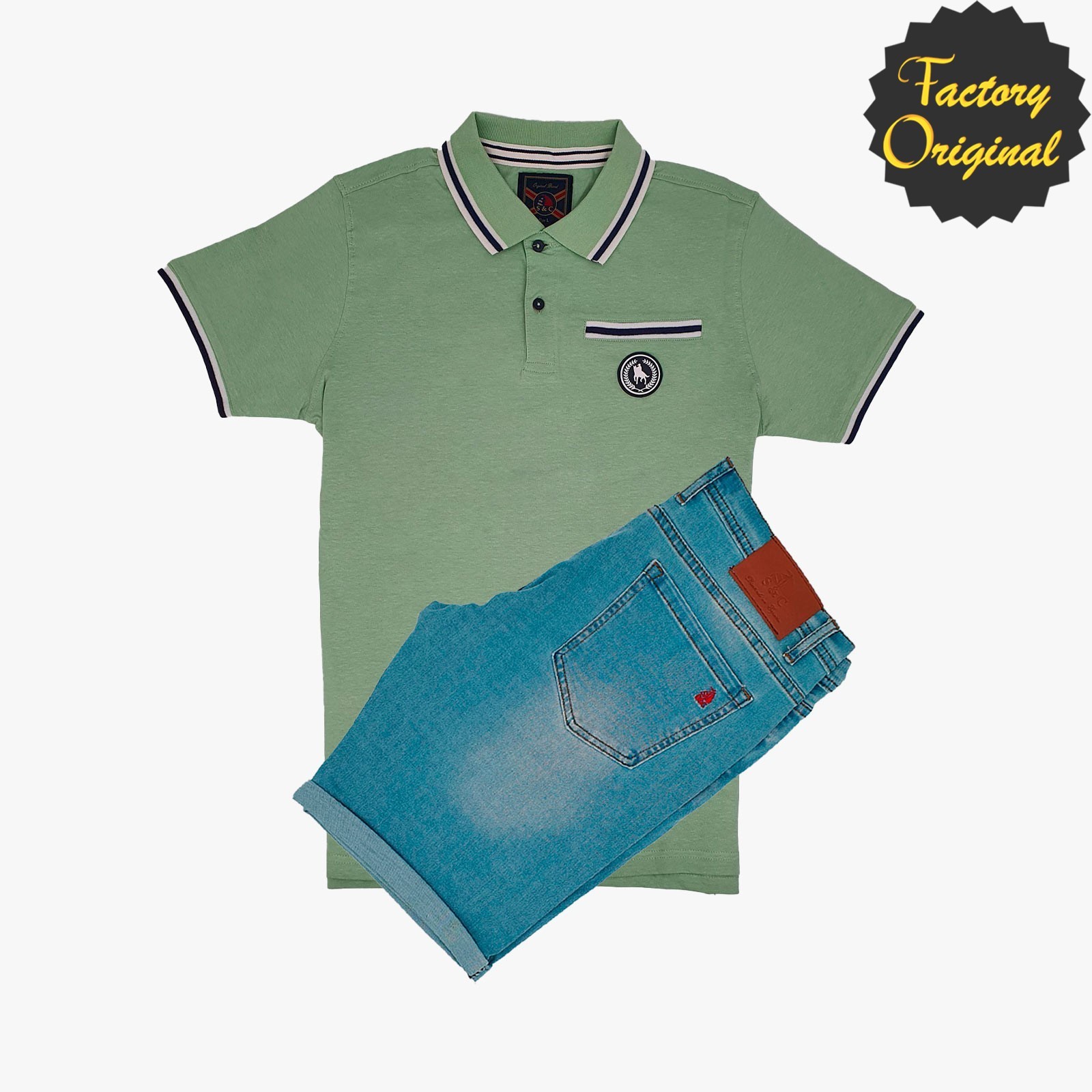 Conjunto de Bermuda barco vaquera blanca polo manga corta fantasía golf SYC Factory Original