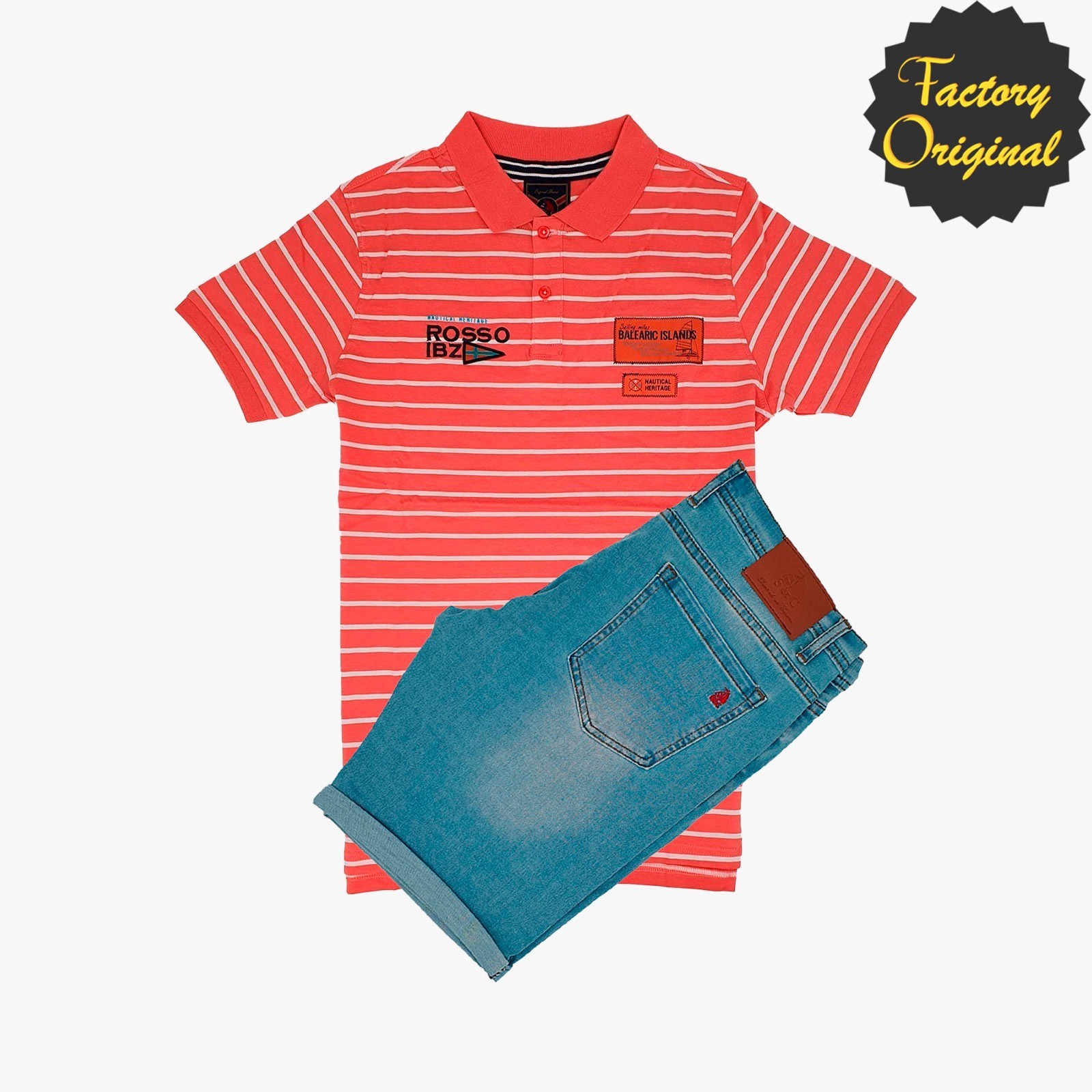 Conjunto de Bermuda barco vaquera clara manga corta fantasía Rosso Heritage coral SYC Factory Original