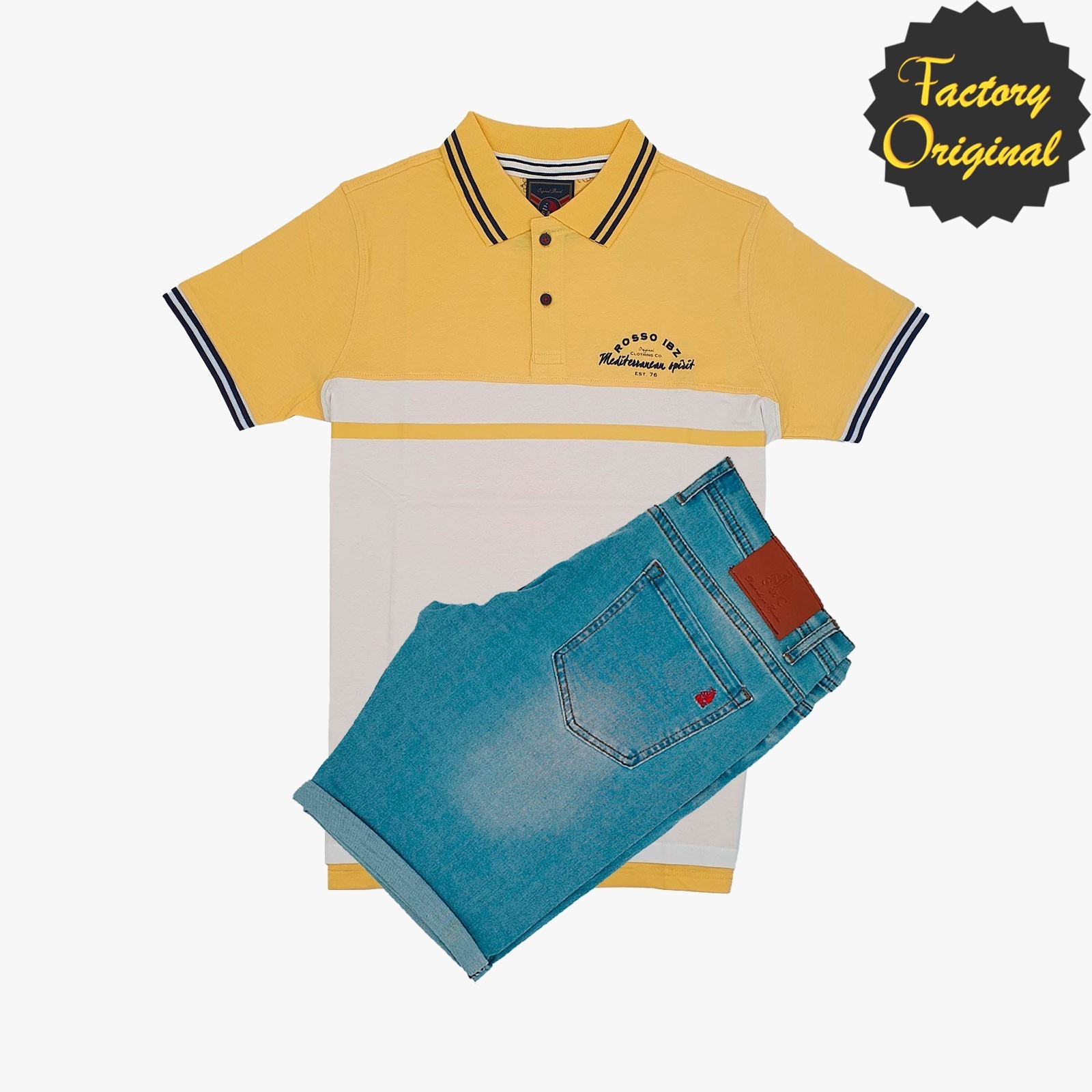 Conjunto de Bermuda barco vaquera clara manga corta fantasía Rosso mediterráneo amarillo SYC Factory Original