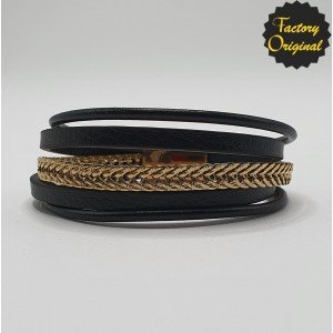 PULSERA MASCULINA DE ACERO INOXIDABLE CON CORREA TIPO CUERO Y CIERRE DE ACERO INOXIDABLE