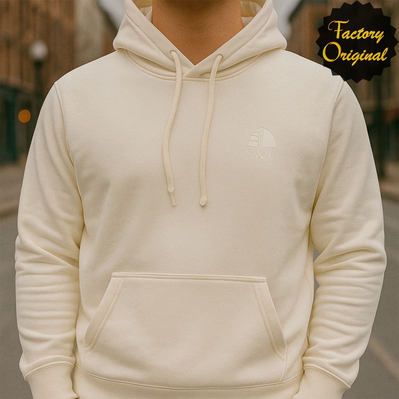 SUDADERA LOGO BARCO CON CAPUCHA BLANCO DE SYC FACTORY ORIGINAL